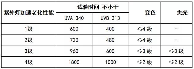 ▼在紫外燈加速老化性能中補(bǔ)充了變色和失光兩項(xiàng)評(píng)價(jià)指標(biāo)