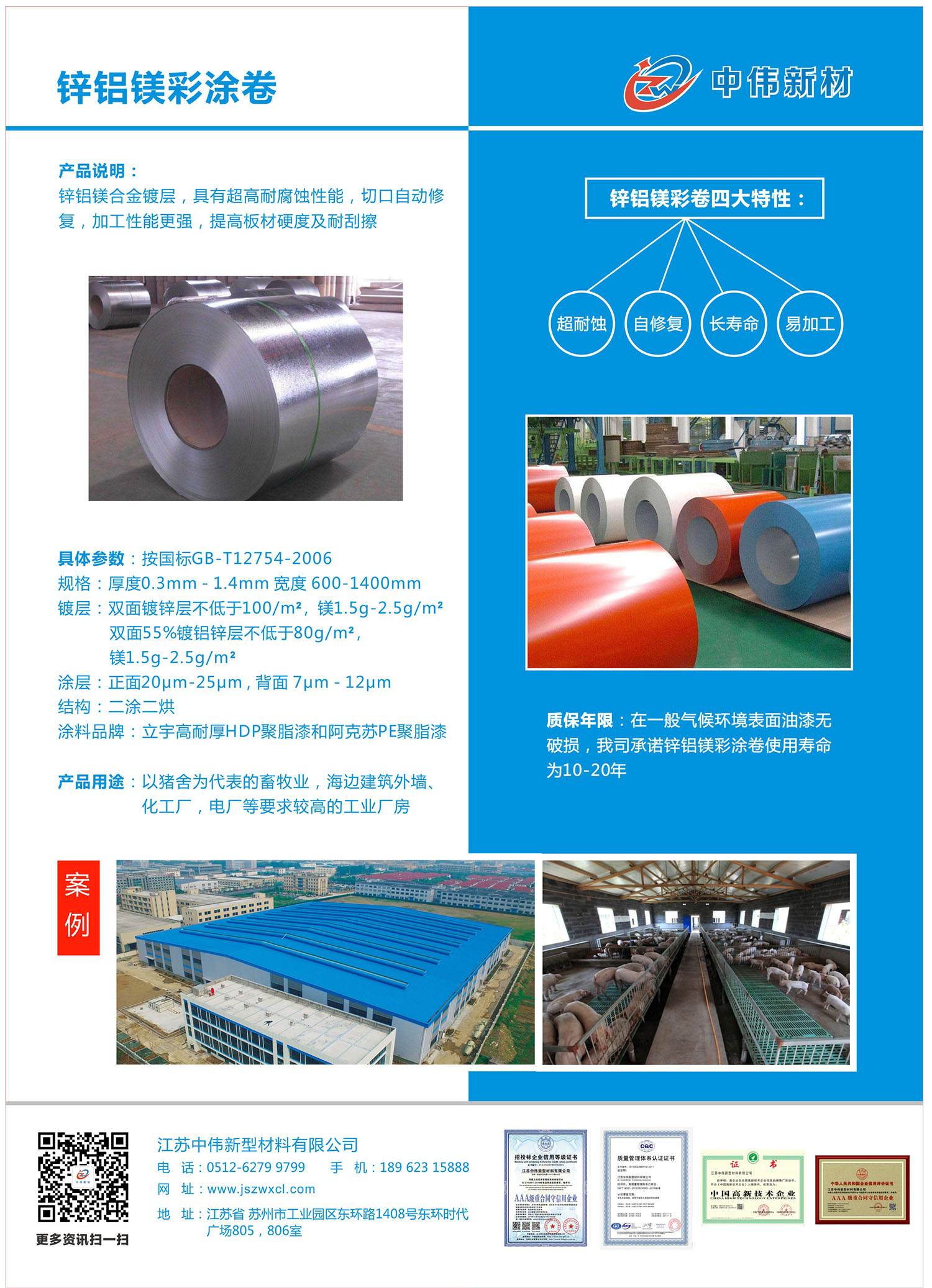 中偉彩涂卷,工藝技術(shù)裝備先進,已有11年的優(yōu)質(zhì)彩涂板生產(chǎn)經(jīng)驗,鋼種齊全,且性價比優(yōu)異,廣泛應(yīng)用于國內(nèi)外工業(yè)建筑、民用建筑、家電、門業(yè)等多個行業(yè)。 ..